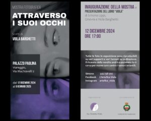 Giovedì 12 dicembre alle ore 17, presso Palazzo Paolina in Viareggio (Via Machiavelli 2), si terrà l’inaugurazione della mostra “Attraverso i suoi occhi”, una selezione di scatti fotografici realizzati da Viola Barghetti, studentessa del liceo Stagi recentemente scomparsa.