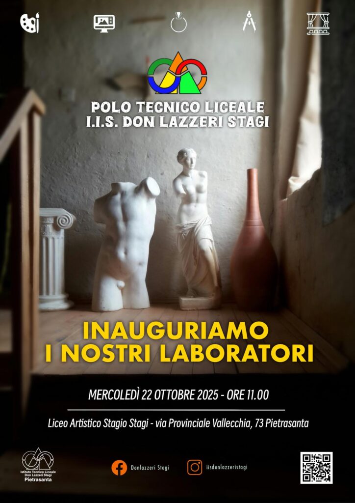 L’Istituto di Istruzione Superiore “Don Lazzeri – Stagi” è lieto di annunciare l’inaugurazione dei nuovi laboratori del Liceo Artistico “Stagio Stagi” di Pietrasanta, un importante traguardo per la storica scuola d’arte della Versilia.